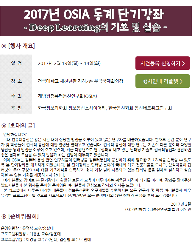 2017³â OSIA µ¿°è ´Ü±â°ÁÂ(Deep LearningdÀÇ ±âÃÊ ¹× ½Ç½À)