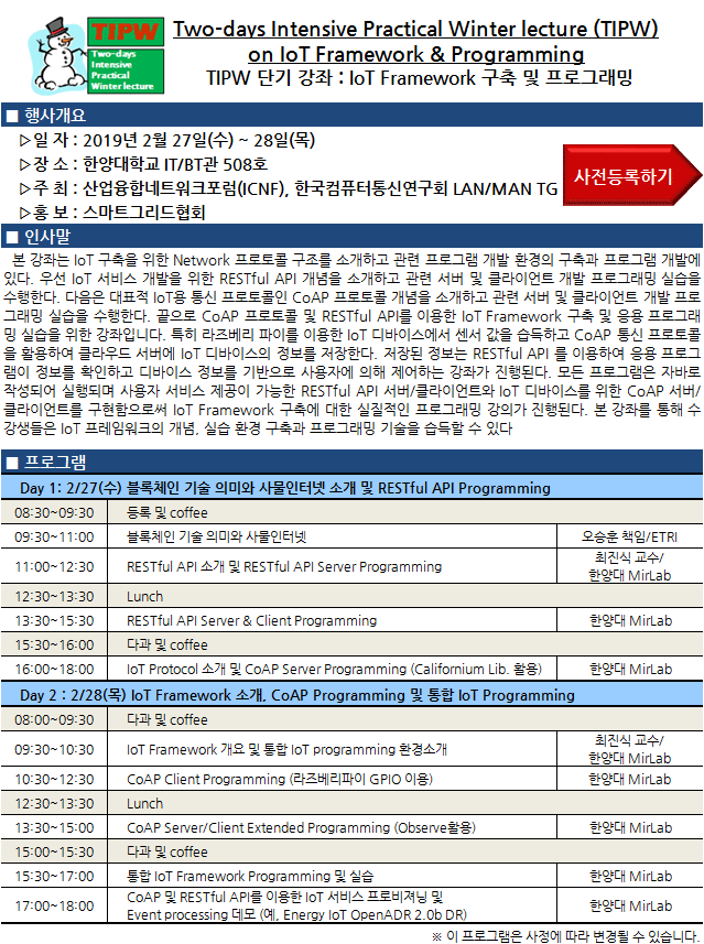 TIPW ´Ü±â°Á : IoT Framework ±¸Ãà ¹× ÇÁ·Î±×·¡¹Ö