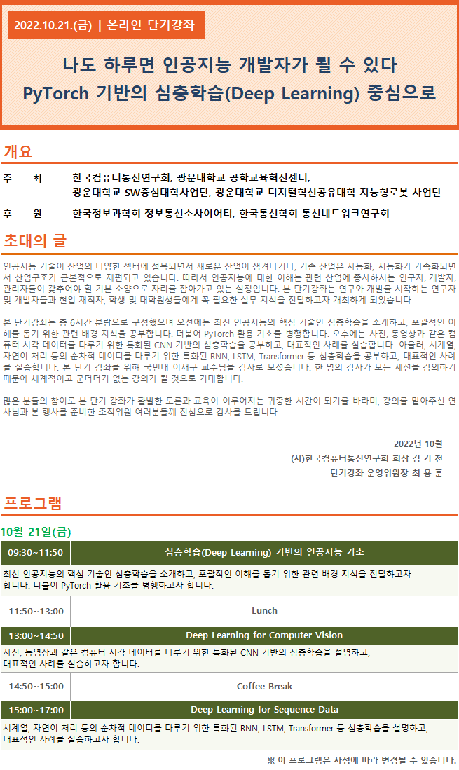 ³ªµµ ÇÏ·ç¸é ÀΰøÁö´É °³¹ßÀÚ°¡ µÉ ¼ö ÀÖ´Ù: PyTorch ±â¹ÝÀÇ ½ÉÃþÇнÀ(Deep Learning) Áß½ÉÀ¸·Î