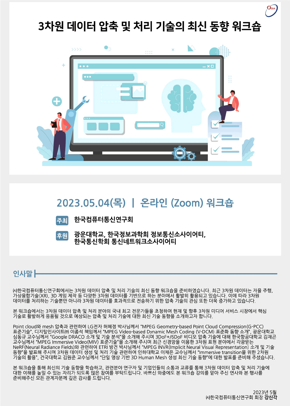 [OSIA] 3Â÷¿ø µ¥ÀÌÅÍ ¾ÐÃà ¹× Ã³¸® ±â¼úÀÇ Ãֽе¿Çâ ¿öÅ©¼ó(2023.5.4.(¸ñ), ¿Â¶óÀÎ)