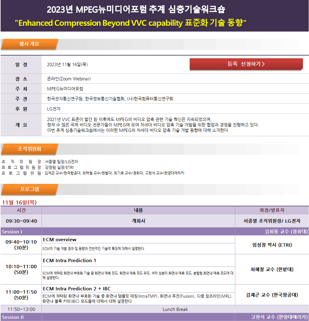 2023³â MPEG´º¹Ìµð¾îÆ÷·³ Ãß°è ½ÉÃþ±â¼ú¿öÅ©¼ó (11/16(¸ñ), ¿Â¶óÀÎ)