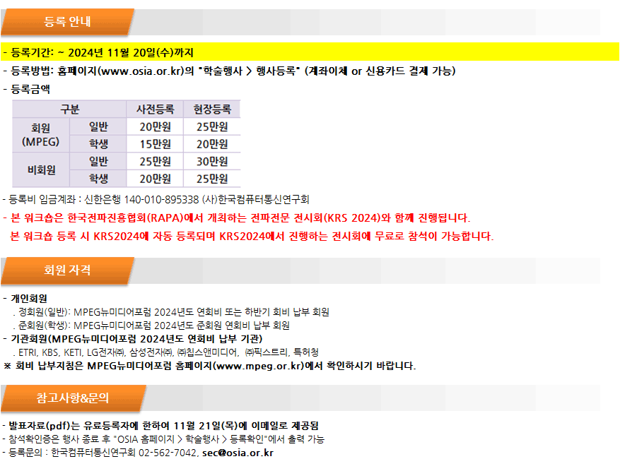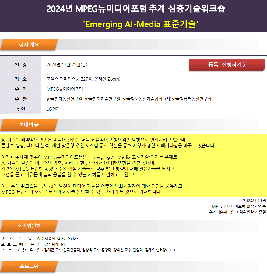 2024³â MPEG´º¹Ìµð¾îÆ÷·³ Ãß°è ½ÉÃþ±â¼ú¿öÅ©¼ó (11/22(±Ý),ÄÚ¿¢½º)