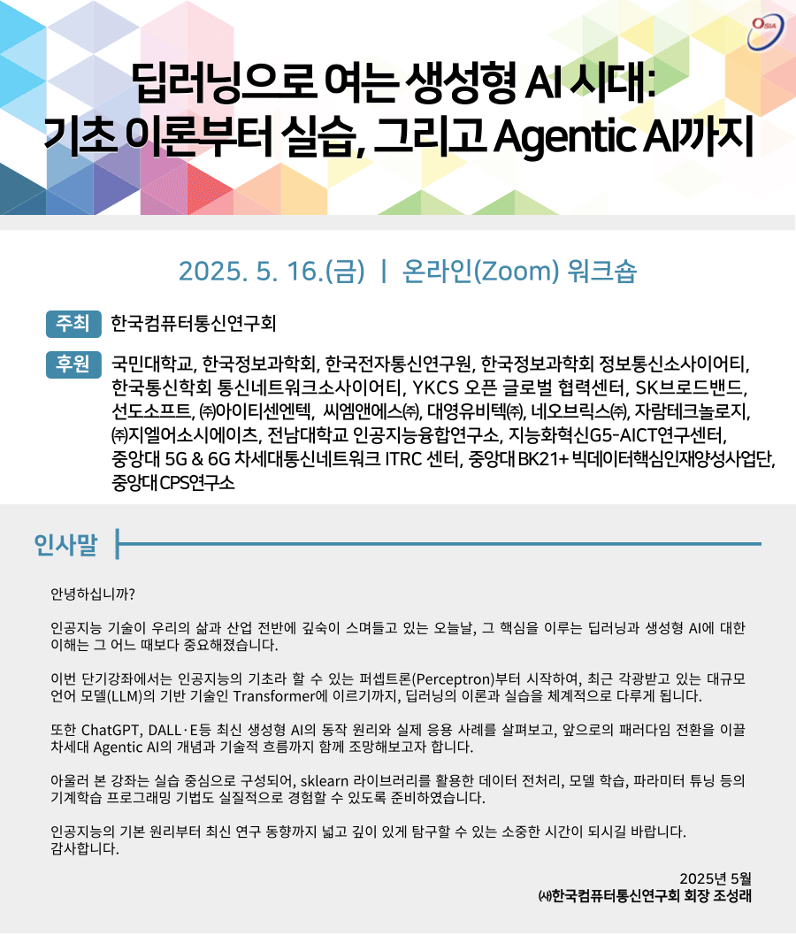 [OSIA]µö·¯´×À¸·Î ¿©´Â »ý¼ºÇü AI½Ã´ë: ±âÃÊ À̷кÎÅÍ ½Ç½À, ±×¸®°í Agentic AI±îÁö(2025.5.16.(±Ý), ¿Â¶óÀÎ)